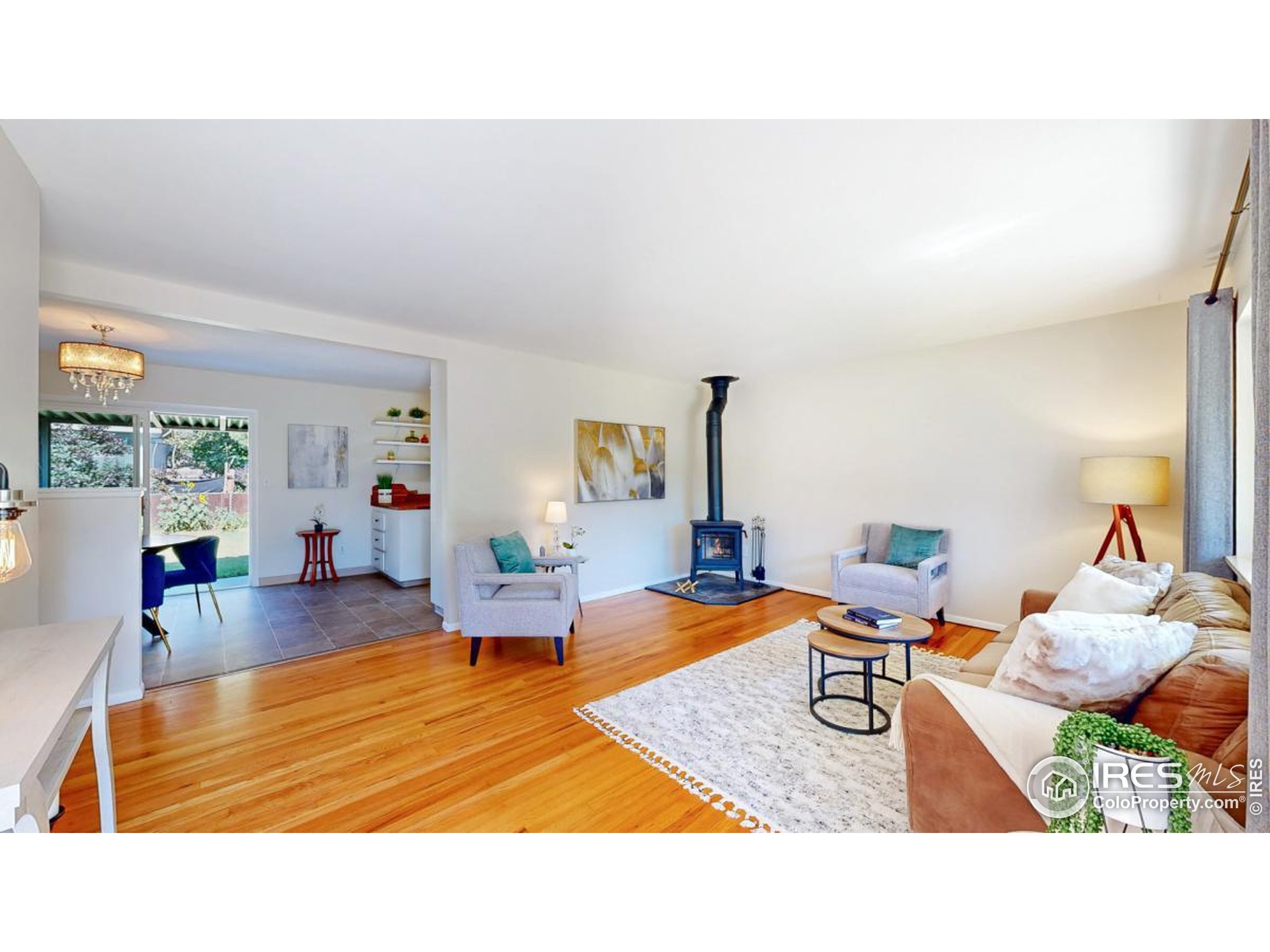 Welcome to this charming 3 bedroom, 2 bath mid-century home nestled in the heart of west central Fort Collins! This beautiful home blends classic charm with modern comforts. As you step inside, you'll be greeted by an open and inviting layout, accentuated by the beautiful hardwood floors. A/C, new siding & exterior paint, new roof, freshly painted interior, updated lights, newer appliances, new water heater, & wood burning stove are the many updates this home has. Enjoy summer evenings in the fenced backyard - relaxing under the covered patio. This home offers easy access to the foothills, biking & hiking paths, shopping, CSU & Old Town. 1 car garage. Raised flower beds. Don't miss the chance to own this beautifully updated mid-century home!