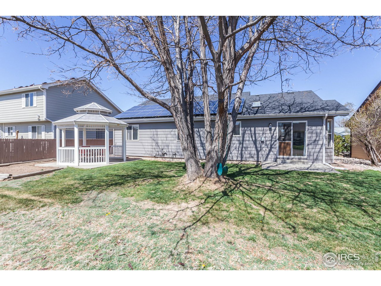 PRICE REDUCTION! Cute as a button & loaded with money saving upgrades. Home features: newer roof, newer furnace & A/C, 5 year old s/s appliances, newer exterior pro-paint. Fully paid off solar (many months electric bills are close to $10 + this summer seller's received 2 x $300 checks from utility company for power sold back to the grid!). So much value!!! Centrally located, adjacent to local park, on a cul-de-sac & backing to open space (HOA allows privacy fencing if buyers want to add a back fence.) This is a well cared for upgraded 3 bed, 3 bath, ranch home with a huge fin. basement rec-room. Hardwood floor entryway greets you as you enter a spacious living room with vaulted ceilings, bay window, & recently serviced gas fireplace. In the kitchen you'll find the newer stainless appliances, updated faucet, & island/breakfast bar backing to a spacious dinning area with a second bay window. Sliding patio door access to the backyard & gazebo. The main floor continues w/ a primary bedroom w/ ensuite bathroom & walk-in shower, as well as 2 guest rooms & a full guest bath. The basement enjoys a large rec-room, great for movie nights or bring your ping pong table. The area could also be ideal for guests to use as a 4th bedroom for holidays / sleep overs as there are 2 egress windows & handy 3/4 bath around the corner. Don't miss the roomy storage closet (you'll find the radon mitigation system hidden in here) & the large unfinished area, with tons more storage & access to the recently replaced high efficiency furnace & hot water heater. The washer & dryer is located here too and is included. Enjoy a spacious backyard, mature landscaping & gazebo on a 14x14 concrete pad. The backyard opens up to a HOA lawn (fencing can be added), offering extra space to run around, throw & kick a ball, or play with fido. 5.2 KW solar system will save you thousands of dollars each year. Mins to downtown Johnstown, 1-25 and BUC-EES! Watch the full video - click on Virtual / Video tour.