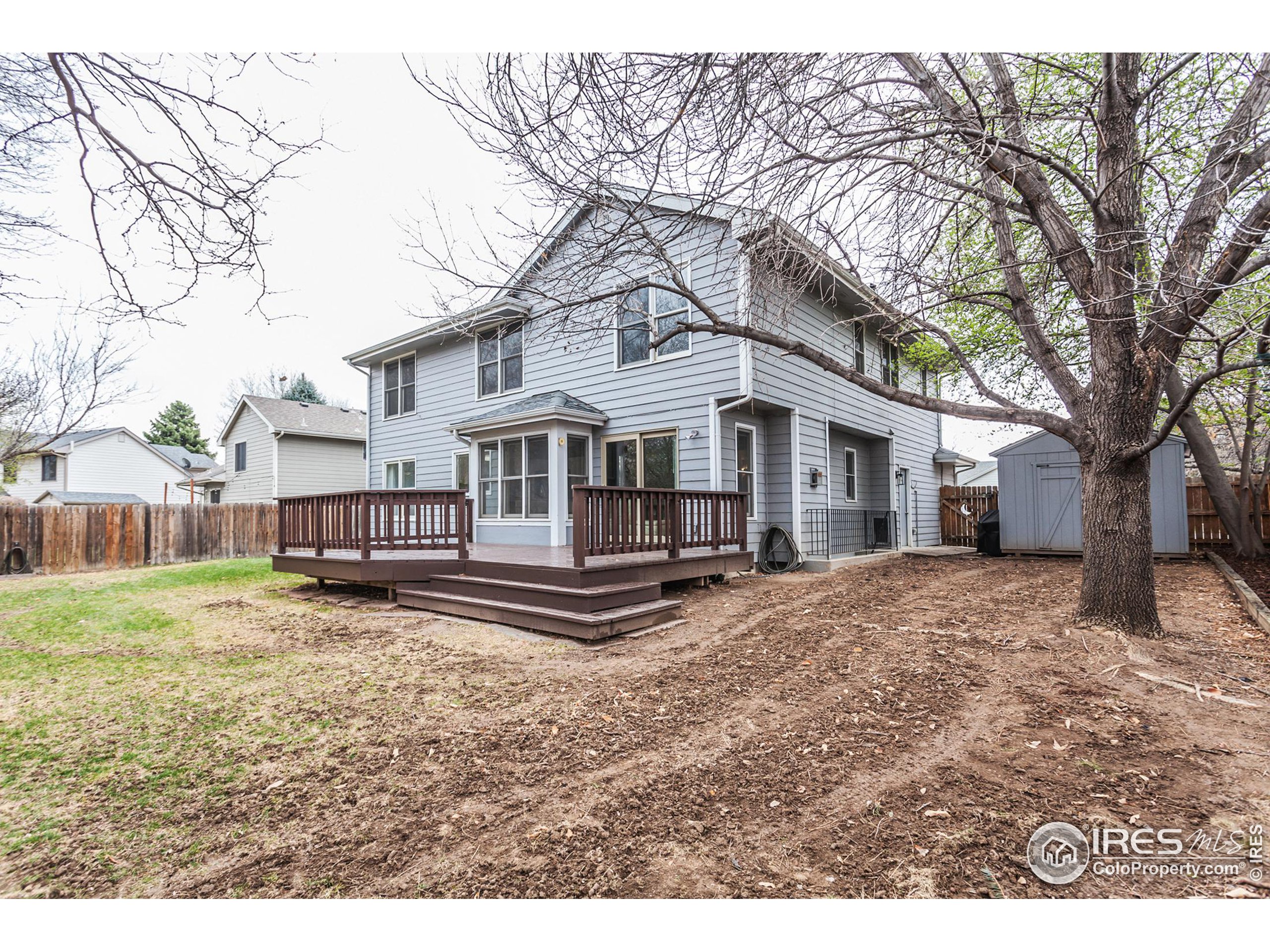 Light, bright, and open 2-story home with a finished basement accessed through a private exterior entrance-perfect for people working from home, out-of-town guests, or a studio apartment. GREAT east Midtown location with NO HOA or Metro Tax, just minutes from the local park (great for dog walking), elementary school, Harmony corridor, and I-25. As you enter, you're greeted by vaulted ceilings, beautiful real hardwood floors, and an inviting, open formal living room. Around the corner is the dining room, adjacent to the kitchen with upgraded Bosch appliances, modern countertops, and updated cabinets. The hardwoods flow throughout the main level and into the living room, which features a gas fireplace with an updated mantle and brick surround. Off the living room, a sliding patio door opens to a recently refinished large deck and spacious backyard. Don't miss the shed to help with all your storage needs. The main floor also includes a laundry room, updated half bath, and access to the garage. Upstairs, you'll find 3 bedrooms, 2 bathrooms, and a loft. The primary bedroom is spacious, with a walk-in closet and an ensuite bathroom featuring both a walk-in shower and a soaking tub. The 2 guest rooms share a full bathroom, and overlooking the formal living room below is a fabulous loft, perfect for gaming, crafting, movies, or sleepovers. The basement, with brand new carpet, is a true gem and incredibly versatile. It can be accessed from the home or through the exterior side entrance! Featuring two spacious rooms, a walk-in closet/office area, a 3/4 bathroom, and a storage room, this space would make a great studio apartment or in-home business. The possibilities are endless.